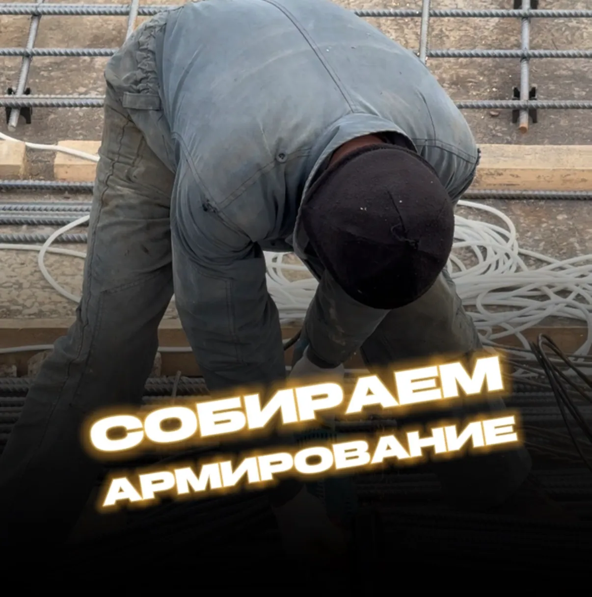 Сборка арматурного каркаса фундаментной плиты в 1-м блоке